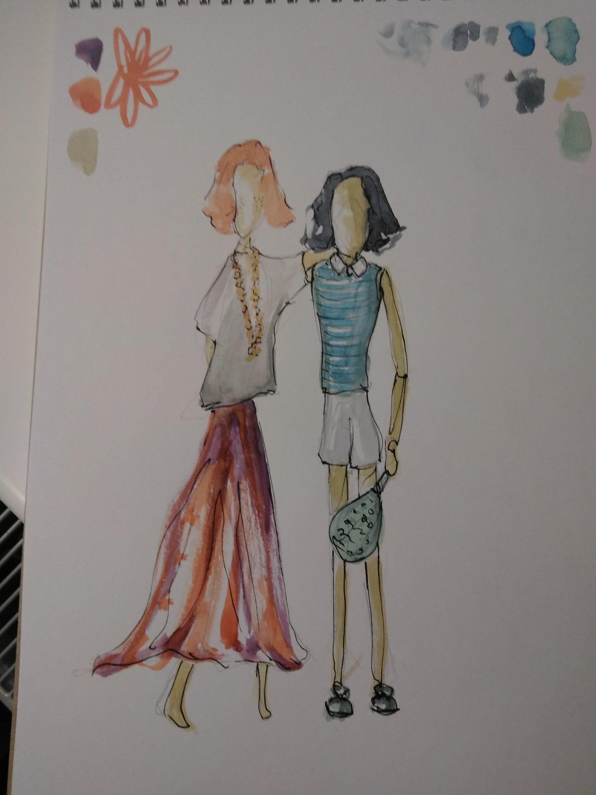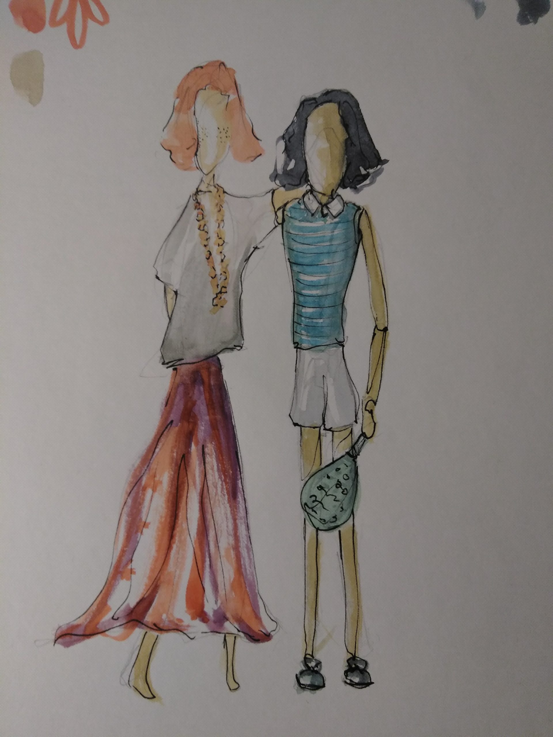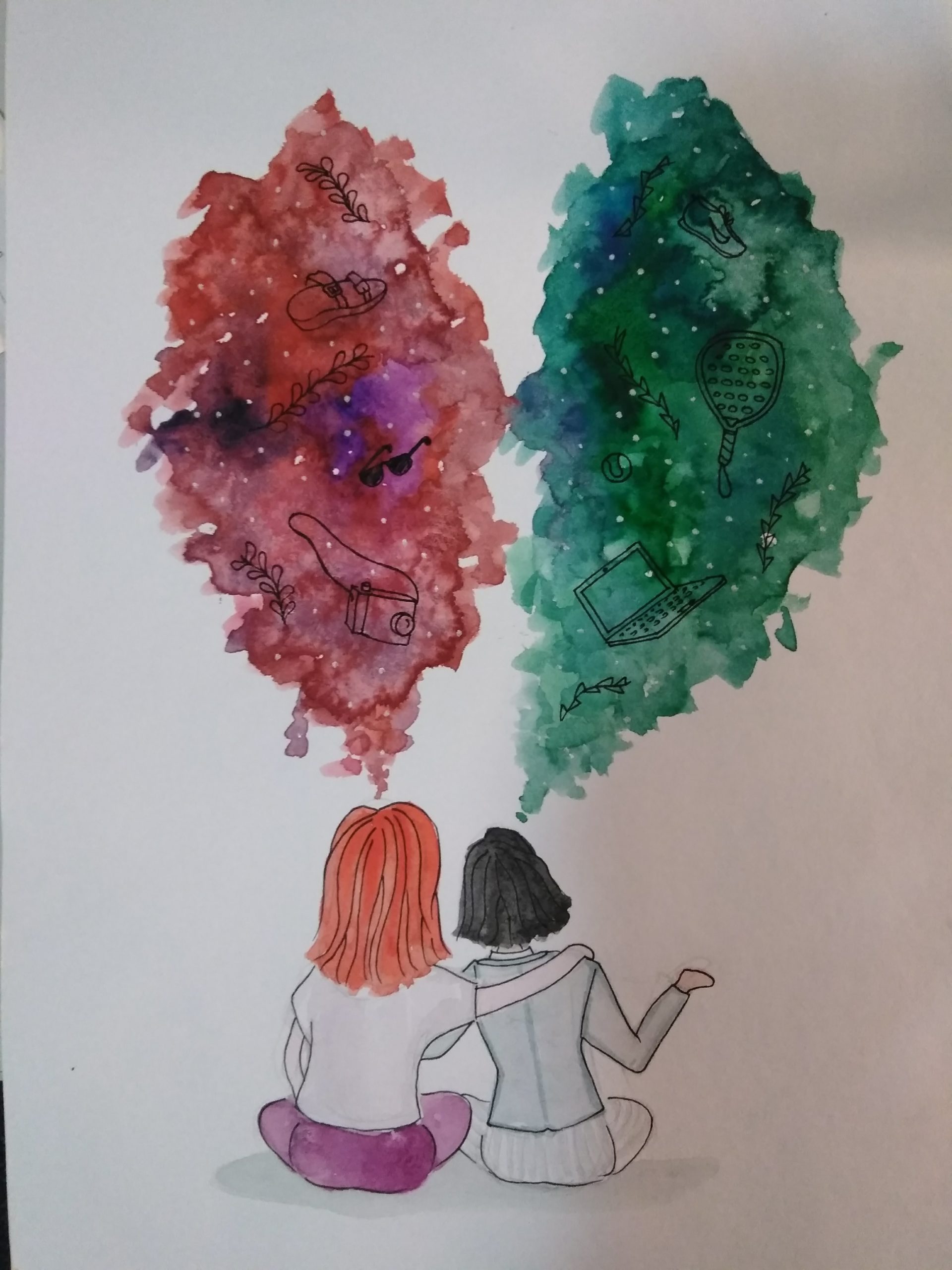 - Draw different objects that point out their differences, one with the laptop, rational, organized and sporty and the other one with a camera, flowers and comfy hippie shoes.