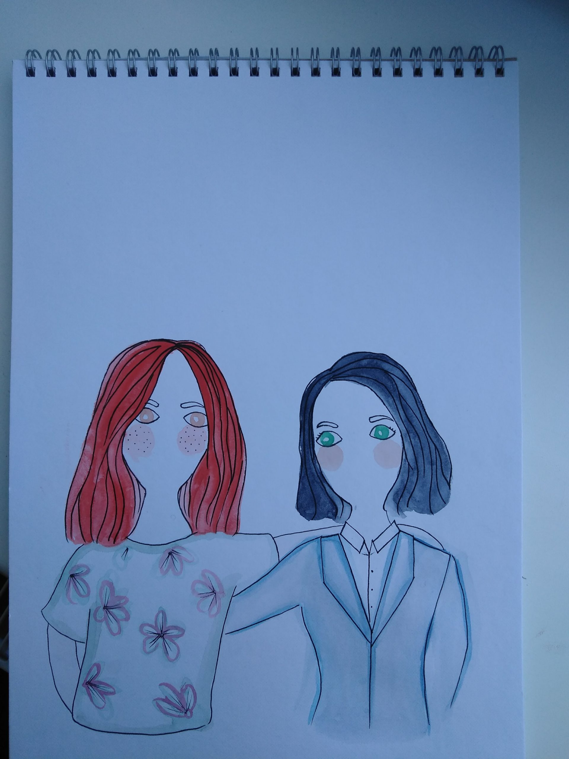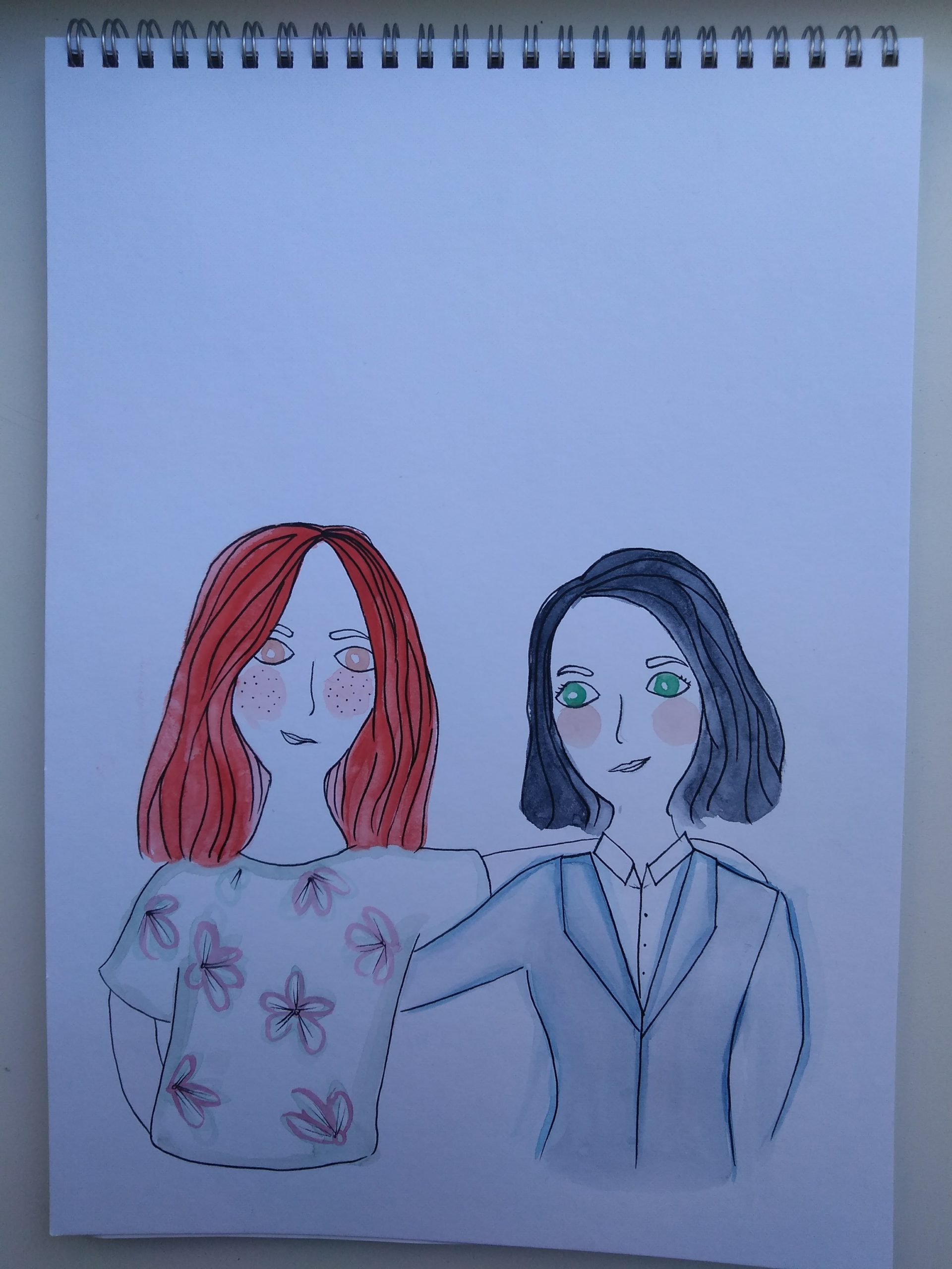 We both agreed that the last one was the most original but that the sister on the left should be the one with the arm position from talking because apparently she speaks a lot with gestures and that one on the right, which is the older sister, should have her arm around her because she has the protective role.