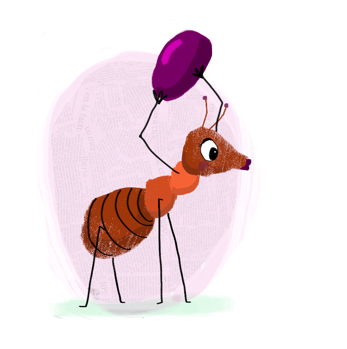 - Character Design: This was the hardest step of all… I had no inspiration in the beginning. This story has been told and illustrated so many times that it was a challenge to come up with a new way of representing the animals. Here are my failed attempts on getting the ant character, by order (formiga):