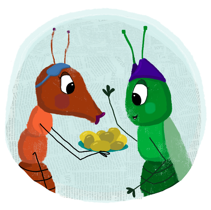 - Brushes/Colors: I decided to use the same brushes for each character to create a certain style. The brush gives a texture of a crayon and I quite liked it. Since there was no reference to colors whatsoever, I used the ones I thought would be best. For the Ant and the Cicada (Cigarra) I made a color pallet because I had to draw them several times: