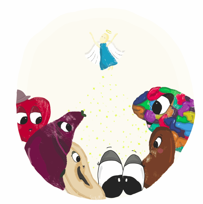 - Character Design: The poem talked about the human body and it’s organs. They are trying to figure out which organ is the most important one and that should be named president of the whole body. I had to find a way to make our not so attractive organs into something that could be appealing to kids so it was quite hard sometimes (specially with the liver). I have no first sketches of the organs because they all came out at the first try, even if the attempt took days.