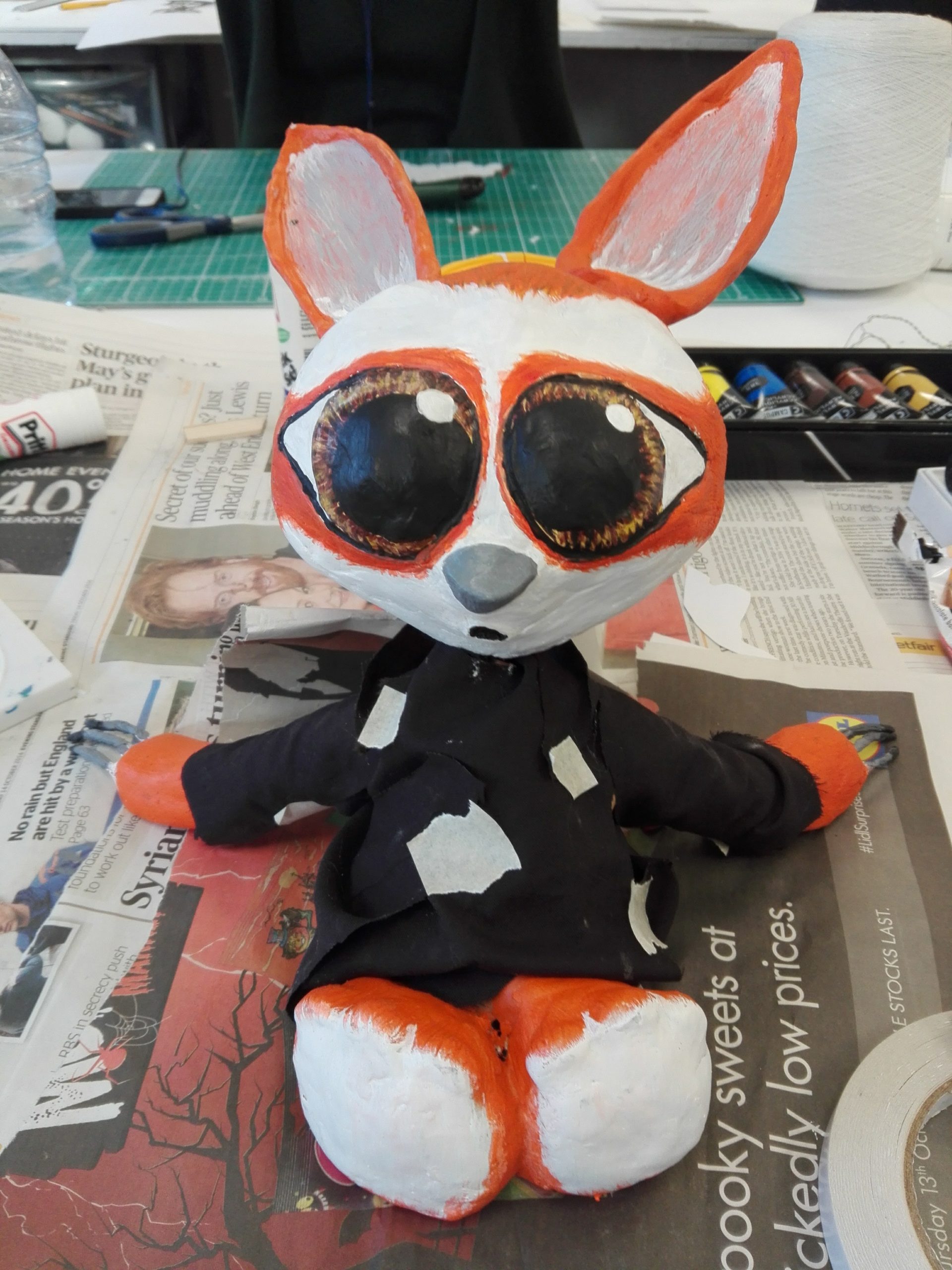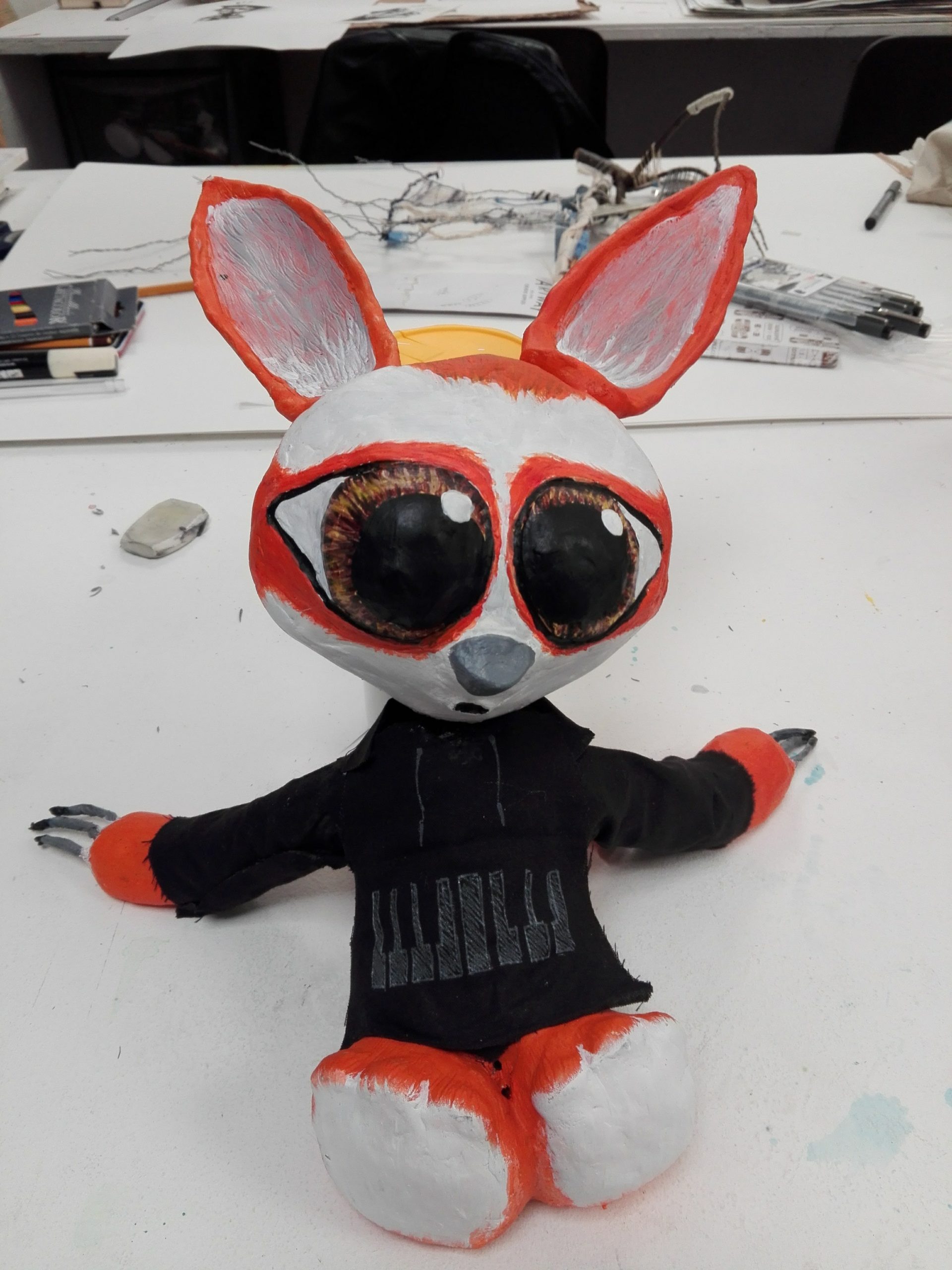 I took long and some things are not so well made like the jumper, it’s just glued because I don’t know how to sue but I generally like the outcome. I just wish I had had more time to make a stop-motion animation with this model because both the head and the ears move.