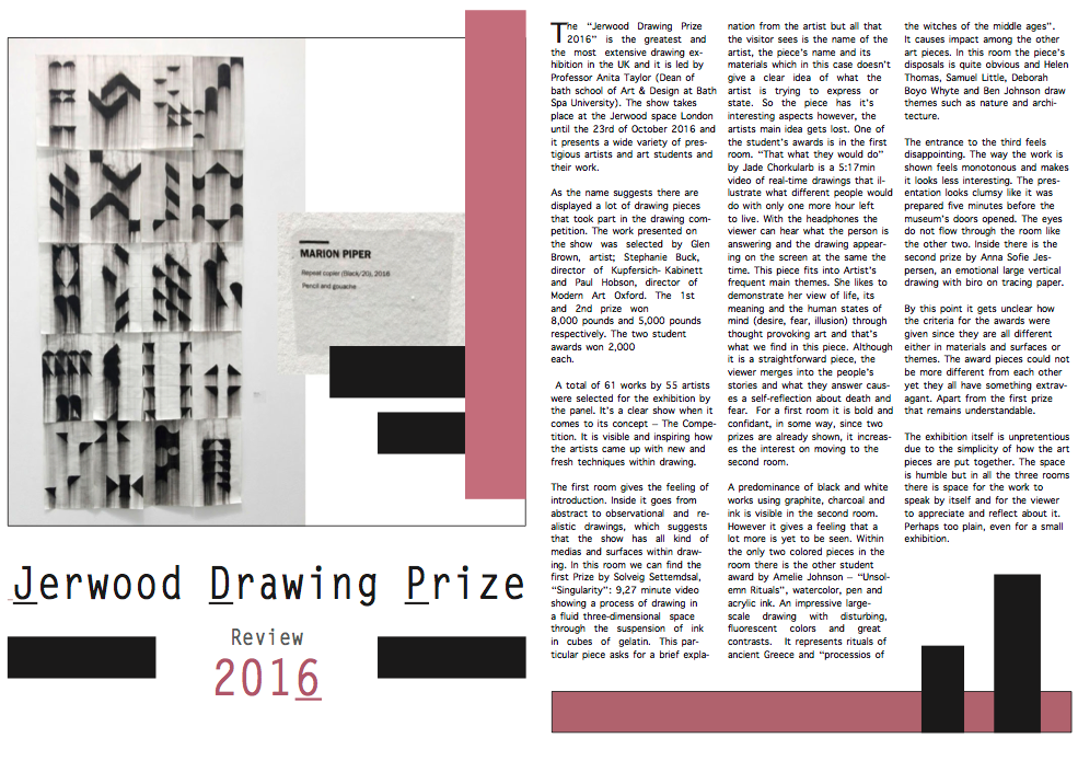 For assessment we have to do the same process but with our exhibition review. So I gave it a try and at first I was struggling because it was not so easy as when Claire was there. However, after a while I started learning by myself. Here are my tries: