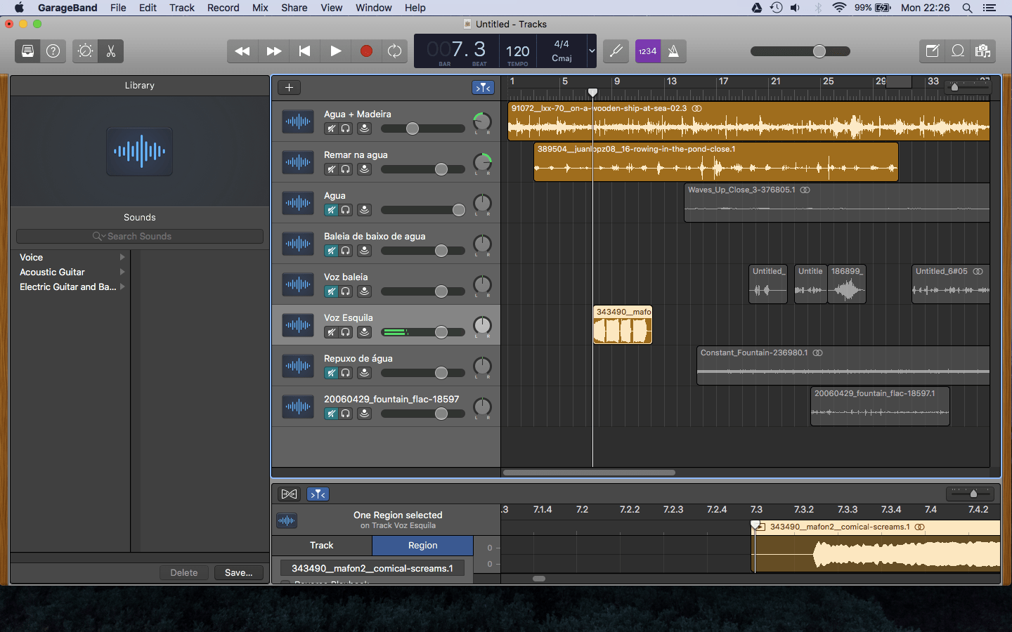 I’ve been through a lot of changes with this project since I never worked with audio like that before. For the voices of the characters, I used my friend’s Constança’s voice because she has a diverse amount of accents and voices. After recorded (on my computer) I almost didn’t change their pitch. I put the voices on opposite sides so it looked like they were far from each other, talking.