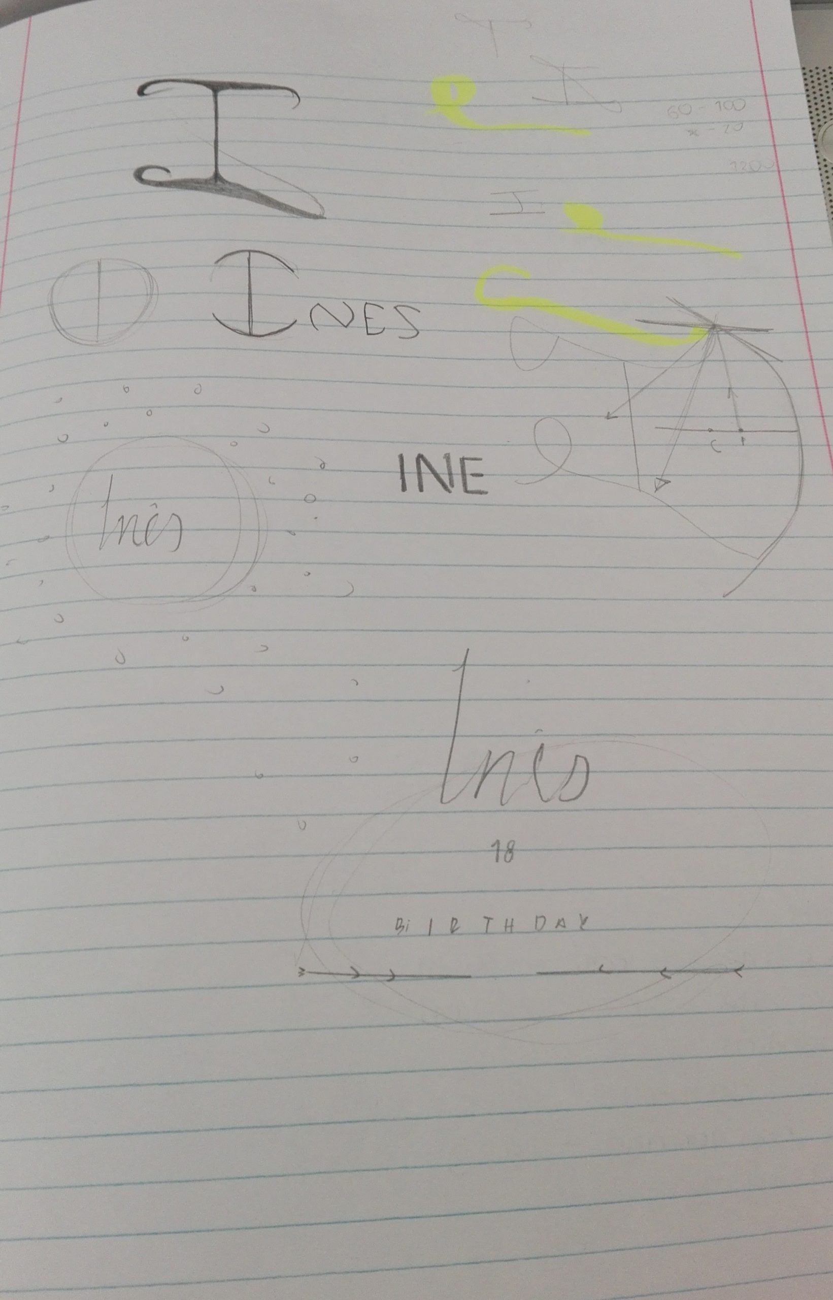 Next stage was photoshop. First I designed Inês with the pen and used fonts for the other letters. I had the idea of circles so I made a lot of experiences but unfortunately, I didn’t save them all..