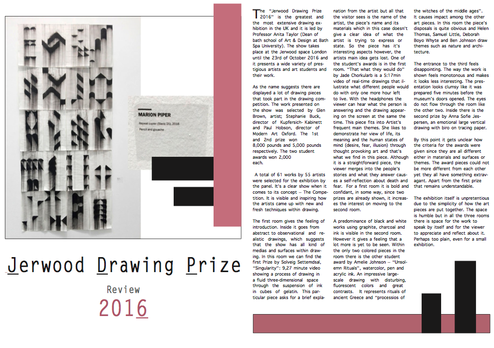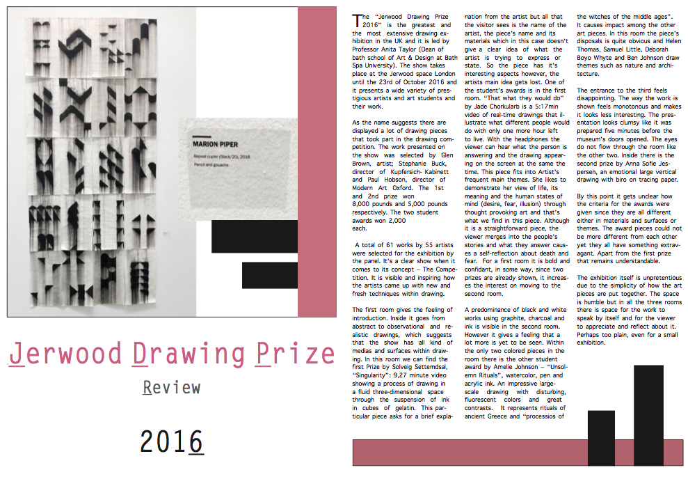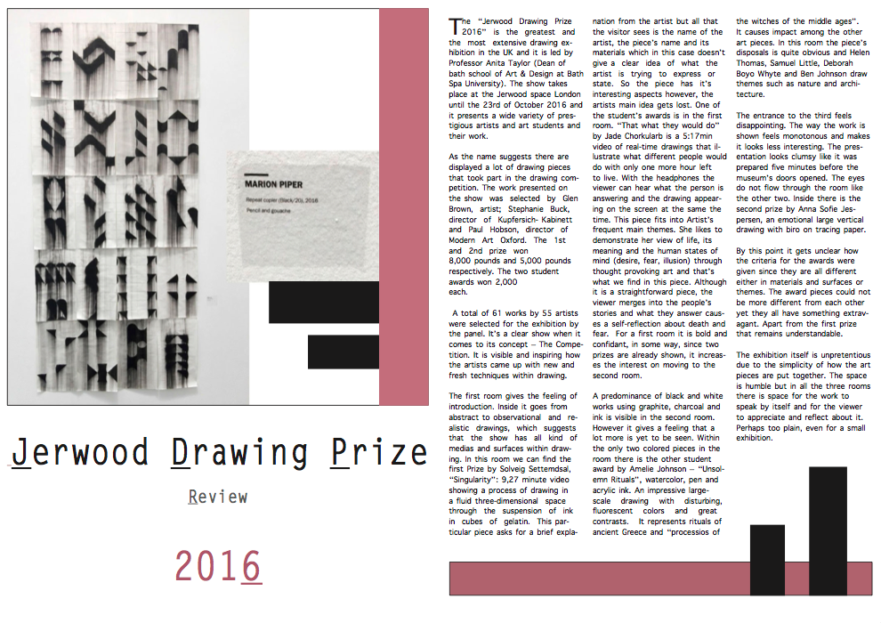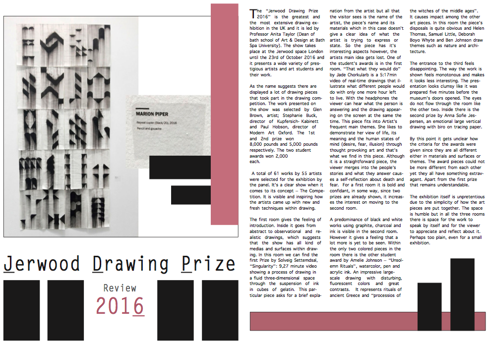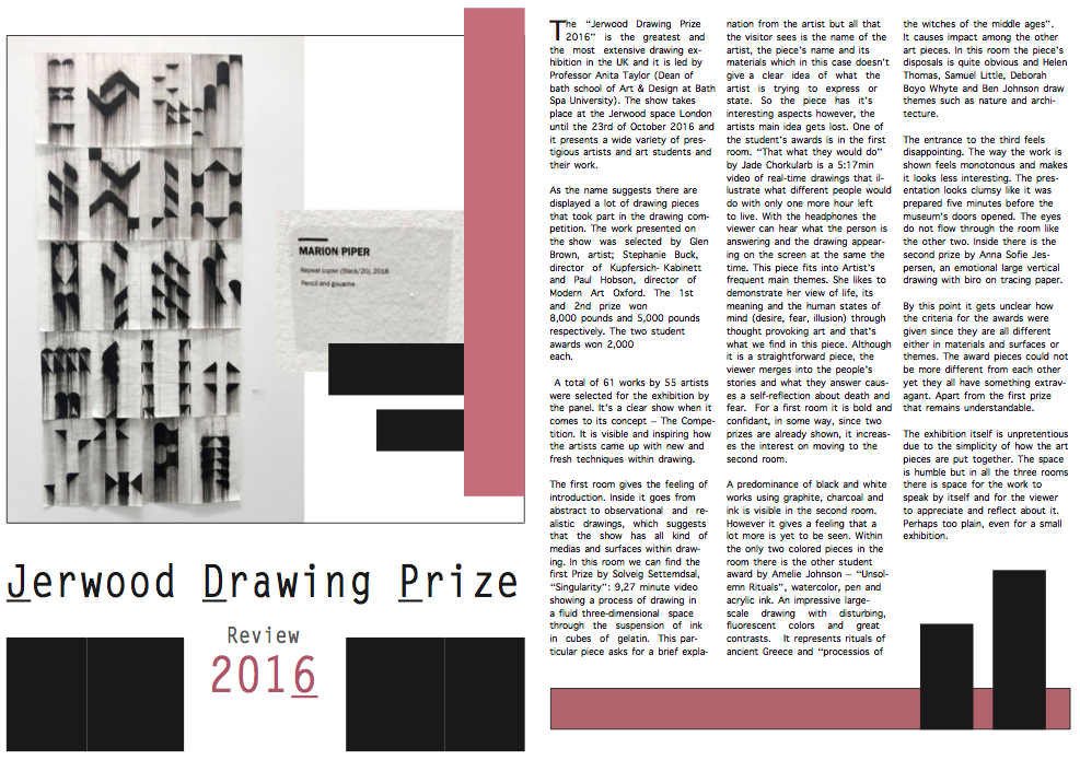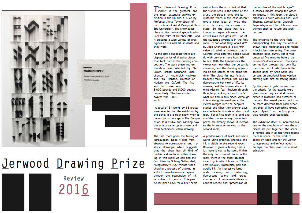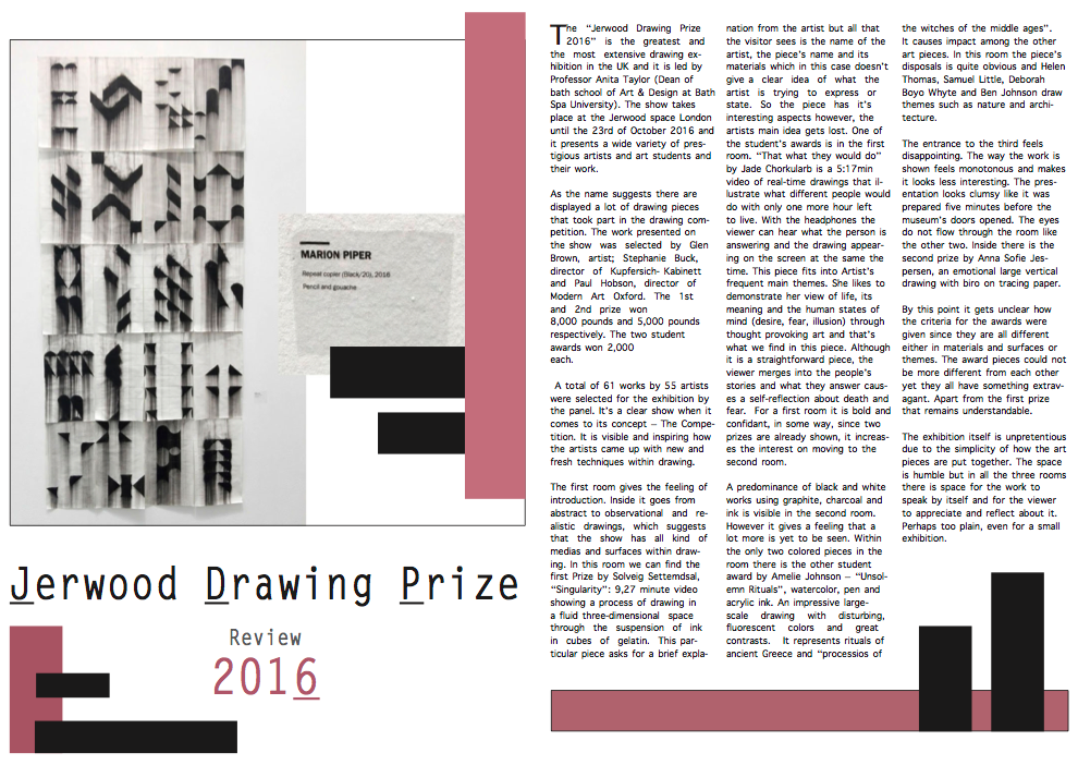 For assessment we have to do the same process but with our exhibition review. So I gave it a try and at first I was struggling because it was not so easy as when Claire was there. However, after a while I started learning by myself. Here are my tries: