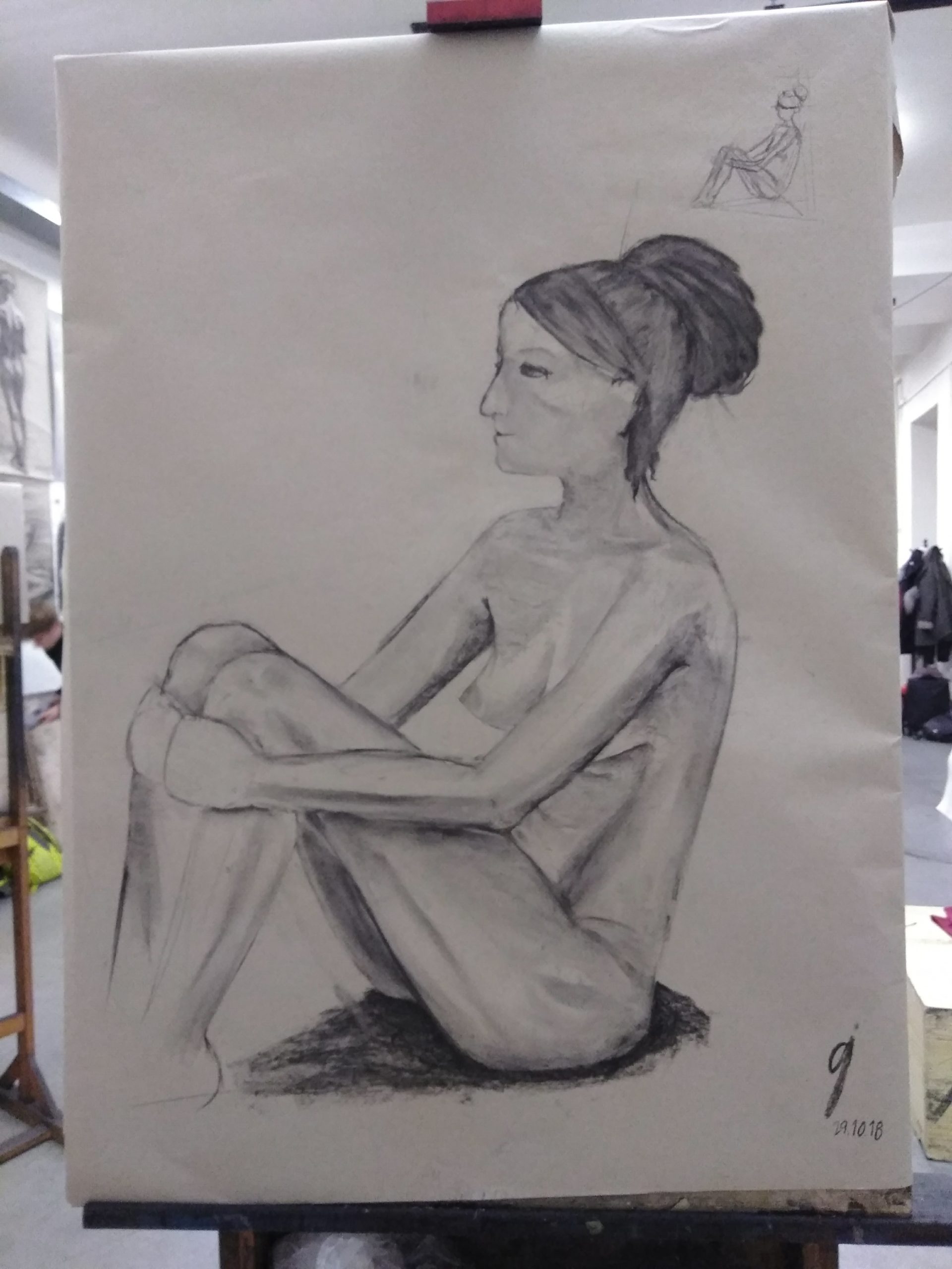 I was a little scared because it has been a while since I did life drawing… The lesson itself was good and the teacher was really helpful and welcoming. Though I am not exactly proud of my work, here it is: