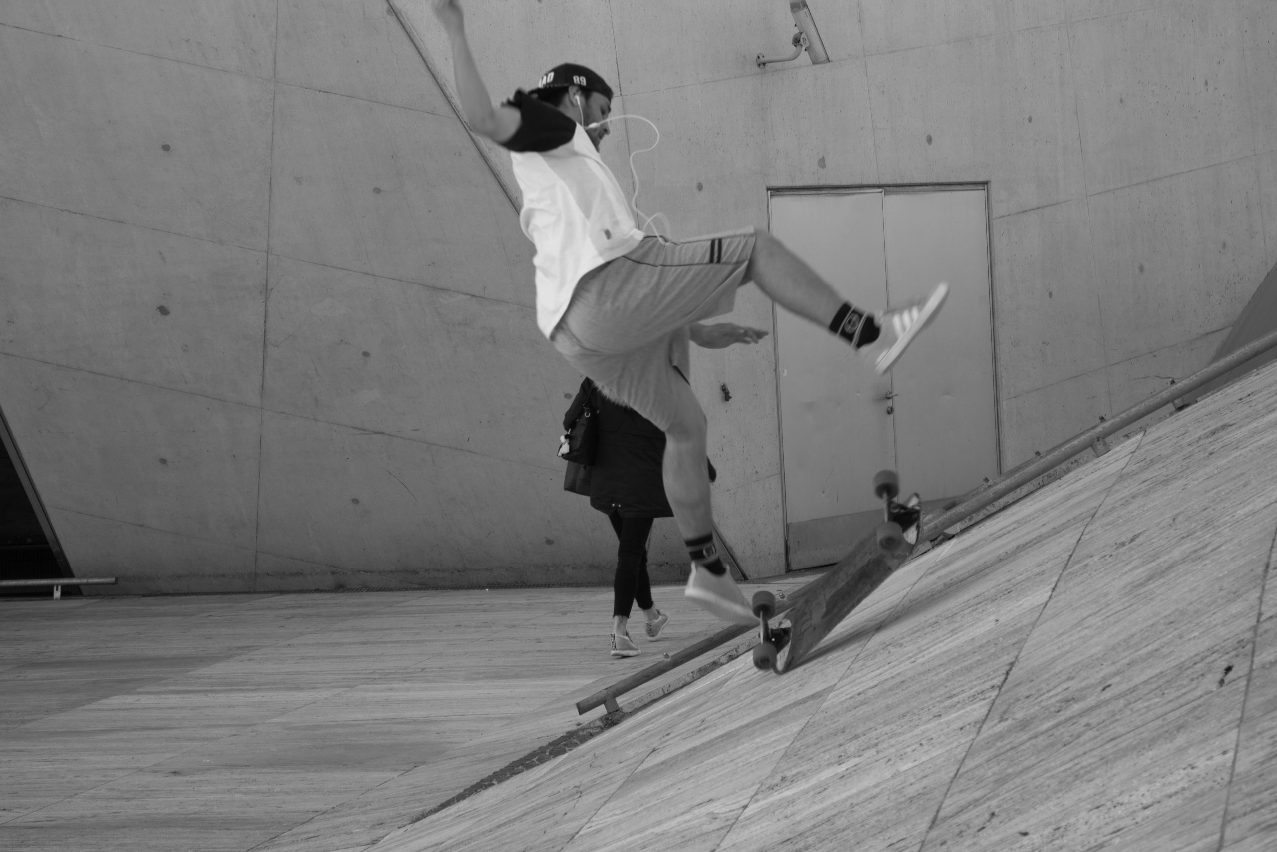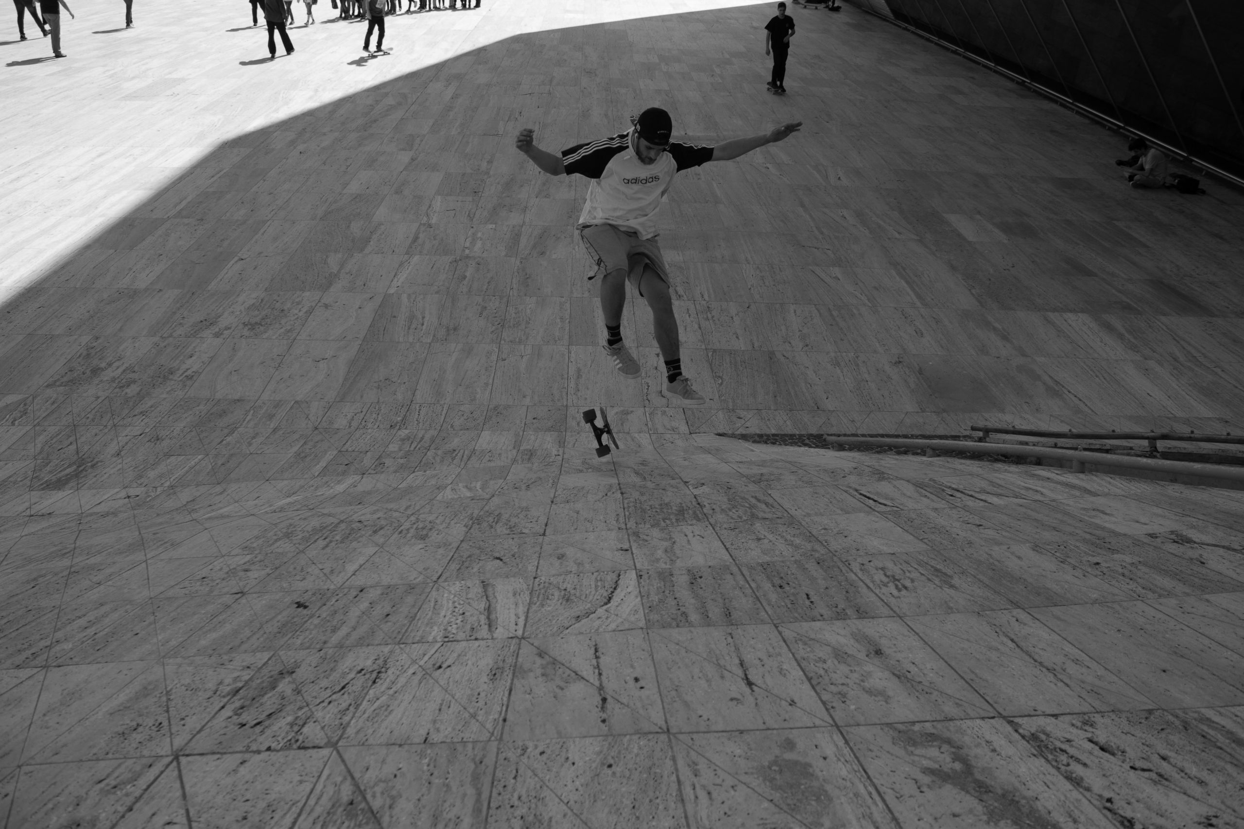 Edgar wanted to capture the difference between the skaters, who make the most usage of the surroundings of the building during the day and the “fancy” people who come to see the concerts at night.